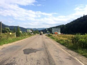 Траса Н-09 Мукачево-Львів, в`їзд в село, перед санаторієм МВД, напрямок руху на Буковель – 645
