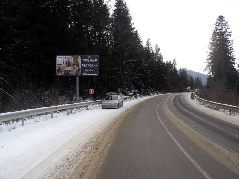 Траса Н-09 Мукачево-Львів, готелі ТатарівДеЛюкс, Дачія, виїзд з села, напрямок руху на Буковель – 644