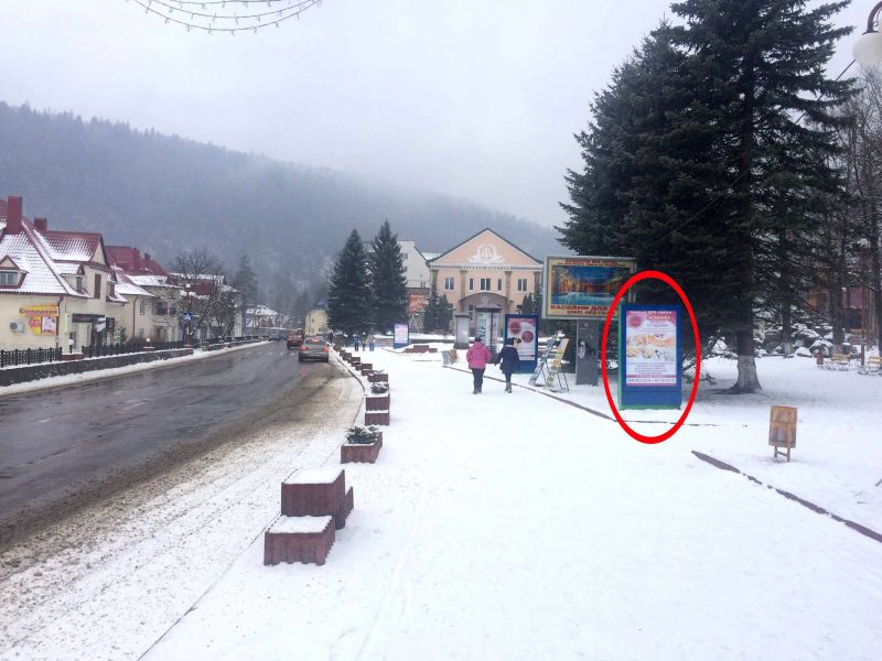 | Траса Н-09 Мукачево-Львів, Свободи, центральна міська алея, міський фонтан, Будинок культури, напрямок руху на Буковель |